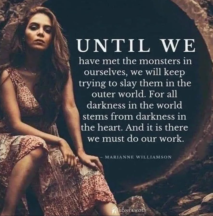 The more aware you are of your own darkness the more you can see it in others. At first one may be “black pilled” and get stuck in this phase of awakening, becoming angry, bitter and always spending time looking for a monster out there instead of the one inside. Yet, the more this becomes integrated, the more compassion and love you can hold for others for where they are on their own journey. Everyone has different lessons to learn, different obstacles to overcome…everyone. You might not be able to walk in their shoes but you can love them in the ones they are wearing, even if it means loving from afar.
